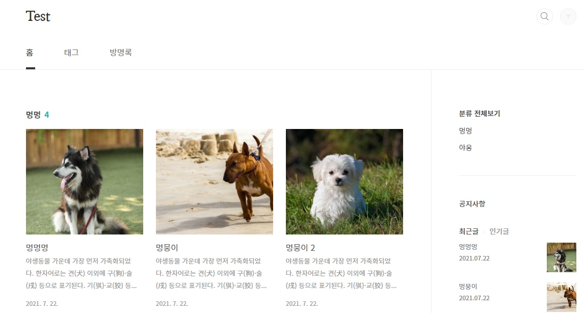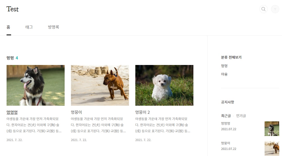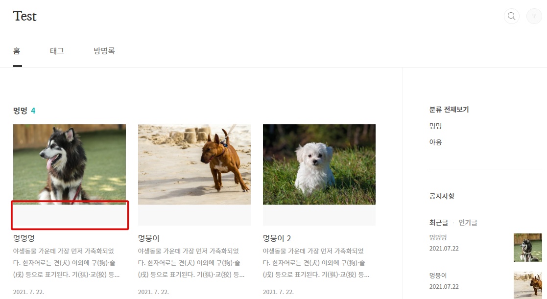 관리 메뉴 중 스킨편집에서 홈설정이 최신글(목록+내용)인 경우와 블로그의 기본 목록에서의 썸네일은 구조가 동일하다는 것을 알 수 있었습니다.