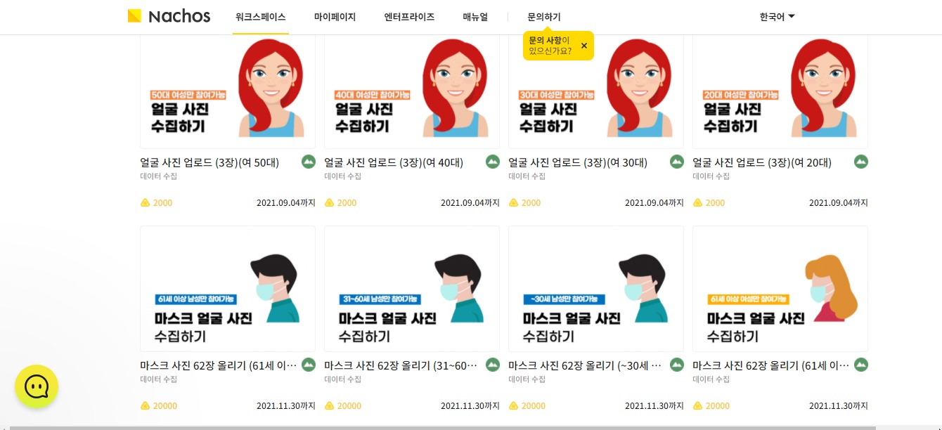 얼굴 사진 수집 작업이 다양한 업체에서 뜨고 있습니다.