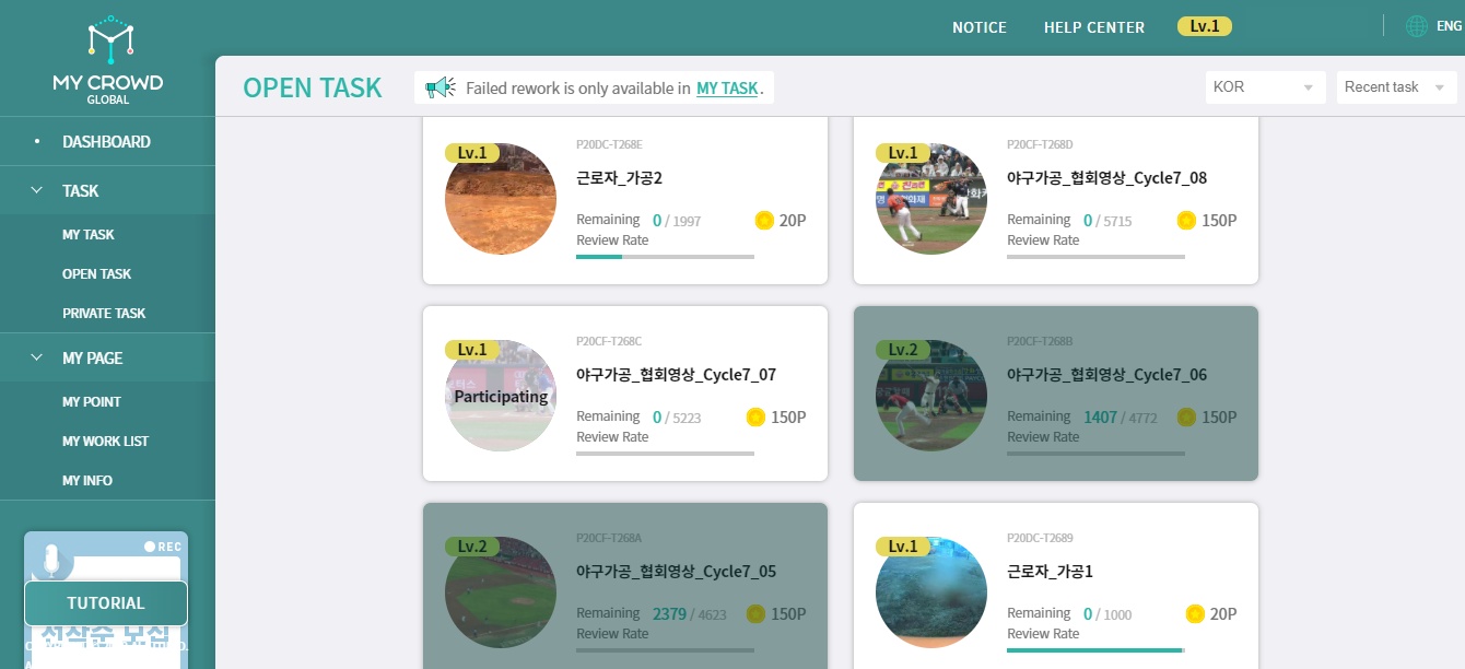데이터고블린의 얼굴 수집은 1작업 한정이고 바운딩까지 하긴 해야 하지만, 다른 업체에서 떴던 작업에 비해서는 단가가 아주 쪼오금 높은 것을 볼 수 있습니다.
