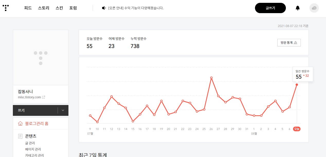 티스토리는 더 마이너합니다.